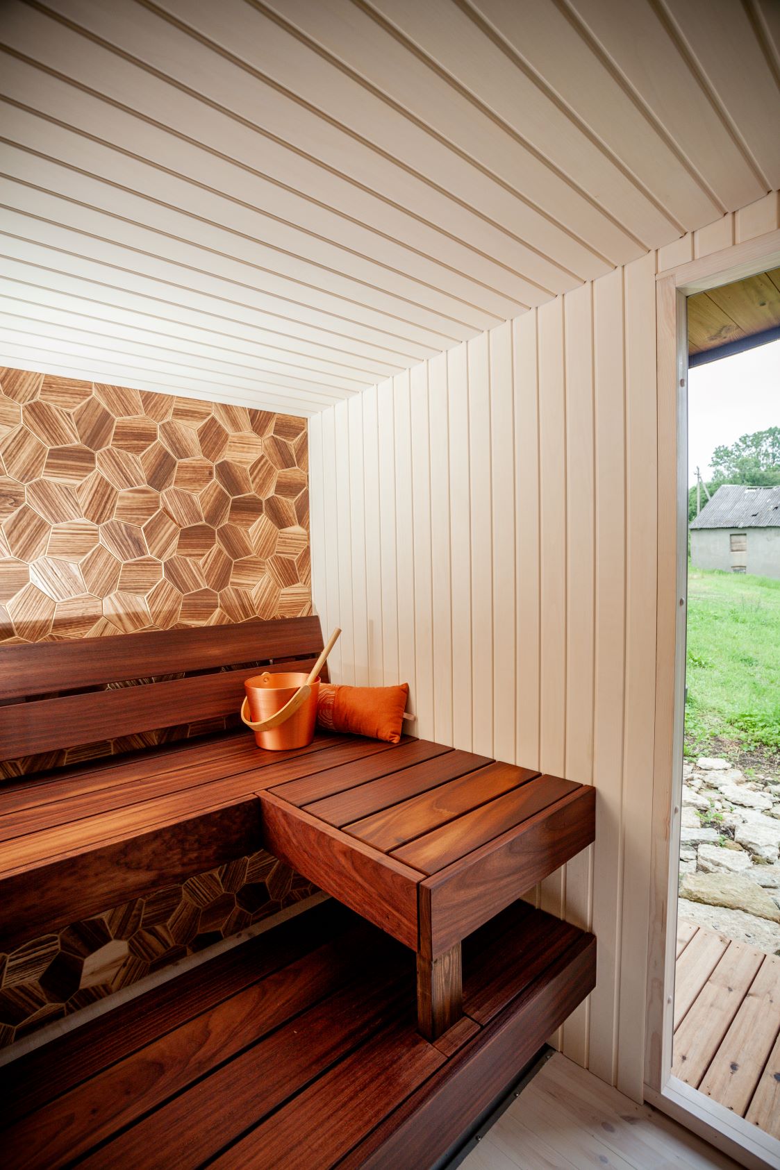 Erleben Sie Saunagenuss in stilvollem Ambiente mit dem Arctic Saunahaus NORD LUX. Die hochwertige Schindelverkleidung aus thermobehandelter Esche garantiert Langlebigkeit und verleiht dem Haus eine zeitlose Optik. Die großflächige Panoramascheibe öffnet den Blick zur Natur und schafft eine lichte, einladende Atmosphäre. Im Inneren sorgt die helle Espenholzverkleidung für angenehme Wärmestrahlung und behagliches Ambiente. Die praktische zweistufige Saunabank mit integrierter Rückenlehne ermöglicht entspanntes Sitzen für mehrere Personen gleichzeitig. Ein durchdachtes Saunahaus, das Komfort und Design perfekt vereint.