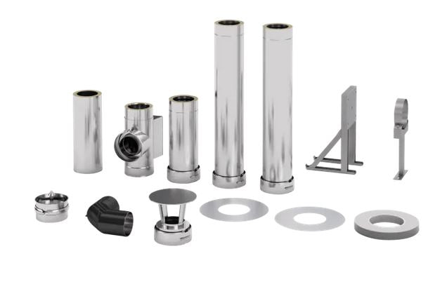 Das Edelstahl Außenkamin CHIMNEY ist ideal für die Montage an der Rückwand und überzeugt durch seine hochwertige Premium-Qualität zu einem fairen Preis. Es besteht aus zugelassenen und geprüften Kaminrohren mit einem robusten Innenmantel aus V4A und einem widerstandsfähigen Außenmantel aus V2A. Die 25 mm starke Isolierung sorgt für optimale Sicherheit und Rußbrandbeständigkeit. Die FinTec Deckendurchführung ist DIBt-geprüft, und das System verfügt über eine VKF-Zulassung – für eine zuverlässige und sichere Kaminlösung.